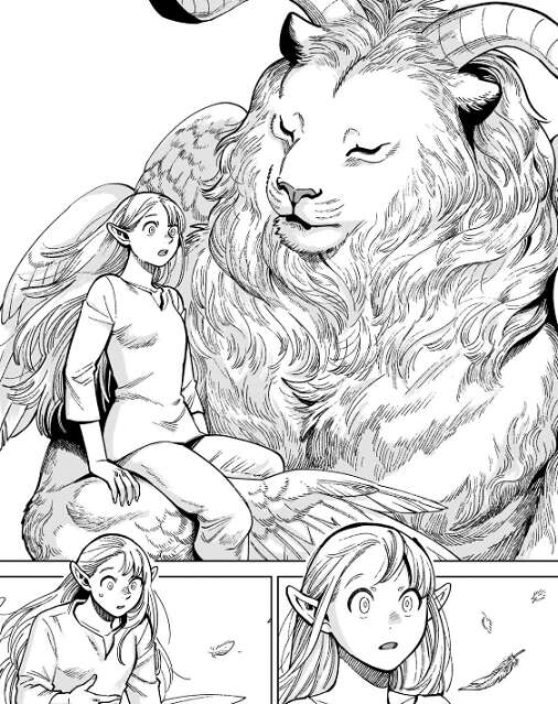 そして、私が迷宮の主になるから、今すぐ私の願いを叶えなさい!!と、マルシルは叫びます。それを聞いて翼獅子は頭がない状態で、素晴らしい!と、つぶやきます。