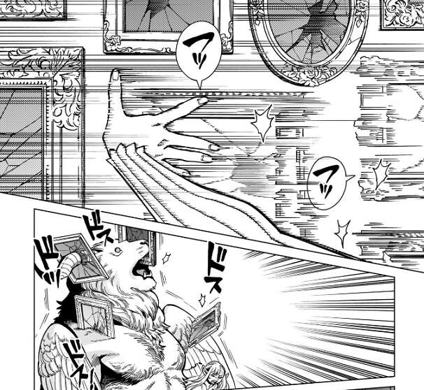 転移術で絵画を翼獅子の体に転移させて、翼獅子の体を削り取っていきます。そして翼獅子の角を使ってマルシルも攻撃しようとしますが、その攻撃は翼獅子が身を挺して防ぎます。