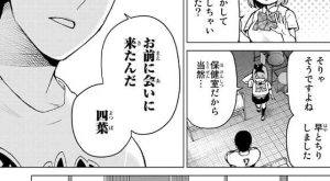学園祭が終わる寂しさを感じながら、せっかくだからいつまでもこんなところに座っていないで屋台に食いに行こうと前田が言うと、風太郎も行けずじまいの店があったと賛成します。そして、それが終わったら俺は会う約束をしている奴がいると言います。
