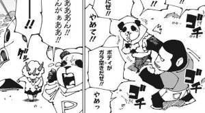 針千釣は突然のアナウンスに、んだぁ?このルール……、と油断してしまい、その隙を突いて伏黒は満象を呼び出して、建物の外に針千釣を弾き飛ばします。