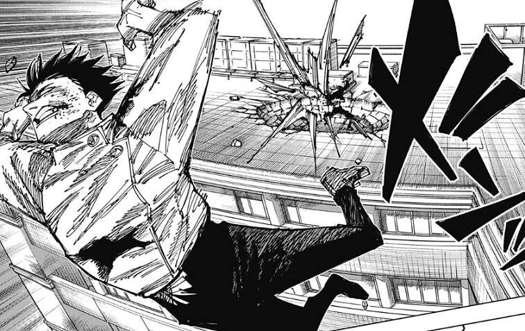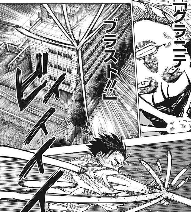 さらに石流は弾き飛ばした乙骨に追い打ちをかけようとし、グラニテブラストで乙骨を攻撃します。しかし、乙骨は片手でグラニテブラストを弾きます。
