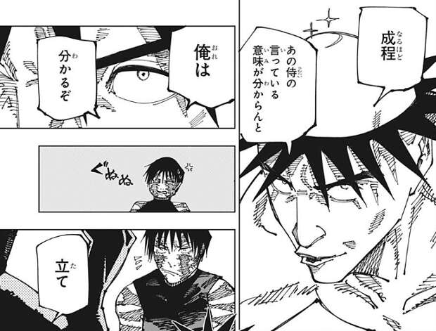 これで伏黒甚爾にまた一歩近づいた真希が、直哉と戦闘する流れになるのか、大道や真希が持っていた刀でひと悶着あるのか、次回の展開がどうなるか、気になります。
