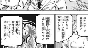 さらに羂索は呪霊を消し去ると、メカ丸が遺した映像をアメリカ大統領たちに見せます。呪霊や呪術師達の戦いの様子がどんなものかを映像で見せますが、アメリカ大統領たちはまるで映画だと言って信じようとしませんが、サイラスは映像を信じて“呪力”は“エネルギー”だとアメリカ大統領に伝えます。そして化石燃料や再生可能エネルギー、全てにとって代わる人類史上最もクリーンなエネルギーが“呪力”だ、とサイラスはアメリカ大統領に力説します。