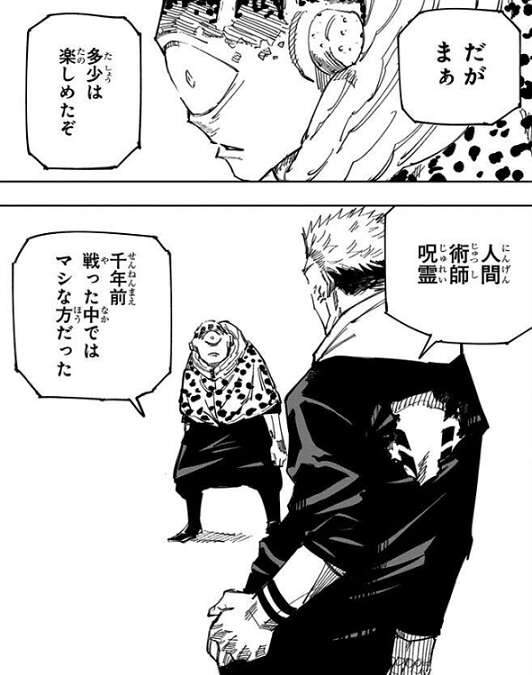 宿儺は領域展開「伏魔御廚子(ふくまみづし)」を使用し、必中効果範囲内の呪力を帯びたモノには「捌」を、呪力のないモノには「解」を、「伏魔御廚子(ふくまみづし)」が消えるまで絶え間なく浴びせます。