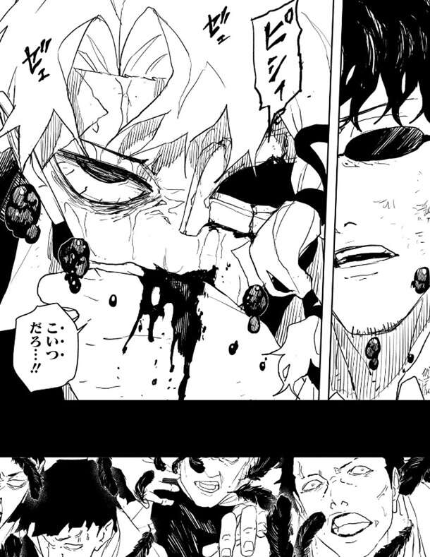 ハクリはまだ回復が十分でありませんでしたが、まだ自分だけ命を賭けていないと言うと、蔵の能力を発動させて、まずは座村か漆羽に触れて“登録”をしようとします。しかし、かなりの無茶だったようでハクリは鼻血を出しながら意識を失い、蔵の能力は不発に終わります。女の巻墨は、ハクリは今無茶をすべきでない、その力はこの先も重要になる、と仙沓寺前行きの移動陣を早く完成させようとします。