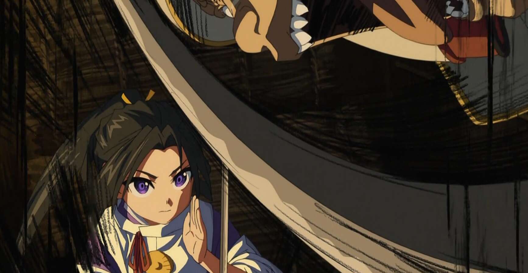 瘴奸は時行が狭い室内で逃げ回り刀が引っかかるのを狙っていると考え、短い打刀で戦えば逃げ場が少ない室内なら簡単に時行を追い詰められると考えます。一方、時行は吹雪に教わった秘剣・「鬼心仏刀」の構えで瘴奸を迎え撃ちます。仏様はいないと馬鹿にする瘴奸は時行に斬りかかりますが、次の瞬間瘴奸は手首から出血していました。
